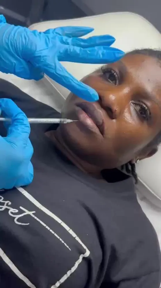 Injections d'1ml d'acide hyaluronique dans le menton, la vallée des larmes, les joues, la jawline, l...